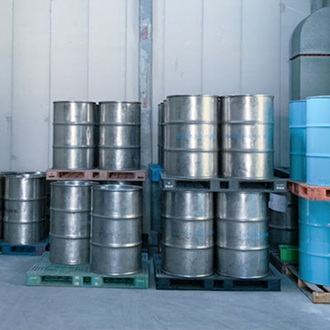 当工場、危険物倉庫(指定数量の135倍)を有しており、香料・アルコールなどの危険物の受取り・保管にも対応しております。