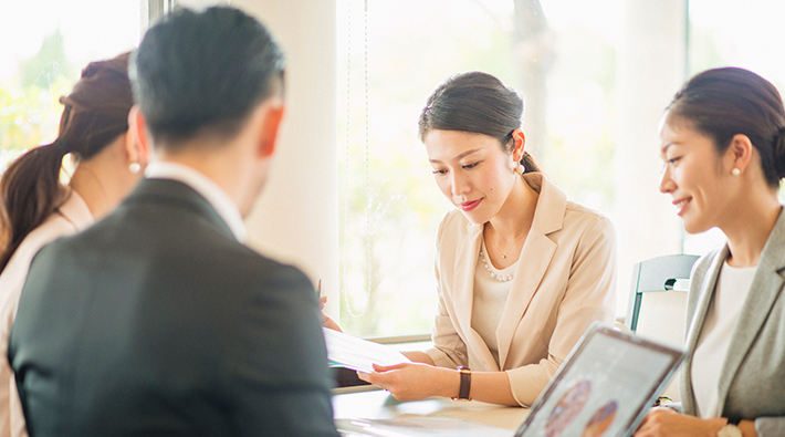 お客様の製品コンセプトを理解し、⾹りや機能性原料などの専⾨的な知識を持つ外交員が 処⽅や仕様の提案をします。
