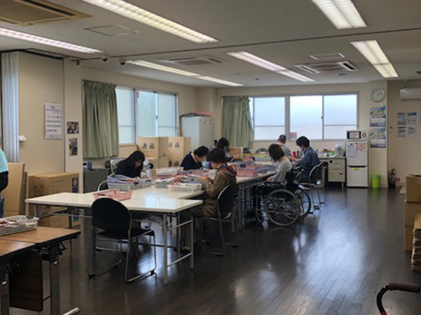 消臭芳香剤などの箱折り、吊り下げ芳香剤のひも付け、その他の商品の包装作業など、プラネット社とのタイアップにより継続してきれいなお仕事をしていただけます。